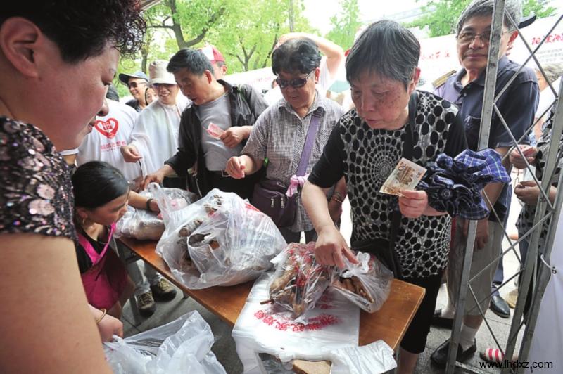 早上9點(diǎn)多,湘城祝家爊鵝攤前,浩浩蕩蕩的隊(duì)伍,已經(jīng)甩出五六十米。這邊老板伙計(jì)忙著卸貨,那邊心急的市民,不斷地催促開賣。一只只爊鵝擺上攤位,透過嚴(yán)實(shí)的包裝,帶著鹵味的濃香依舊不減,聞著就想吃。9點(diǎn)半左右,老板終于頂不住群眾的壓力,提前開賣,90元一只,平時(shí)買棵青菜,還要討價(jià)還價(jià)的阿婆阿爹,眼睛都不眨一下,爽快拿下,一買還是三四只。家住木杏新村的王阿婆,是湘城爊鵝的老吃客。她說,由于市區(qū)買不到,她每次都要坐上公交車,搖搖晃晃1個(gè)多小時(shí),趕到陽澄湖鎮(zhèn)的湘城農(nóng)貿(mào)市場買上幾只,有時(shí)候還要幫鄉(xiāng)鄰帶。“這個(gè)爊鵝,很香,肉很有嚼勁。”王阿婆說,吃了好多年,味道倒是一直沒有變。10點(diǎn)半不到,原本堆得似小山坡的爊鵝,已經(jīng)一只不剩。面對(duì)著空空如也的攤位,祝家爊鵝老板娘孫巧珍急得滿頭大汗,不斷打電話催促兒子,趕緊補(bǔ)貨。 湘城爊鵝相傳源于明朝初年,是陽澄湖地區(qū)的傳統(tǒng)美味。很多蘇州市民寧愿坐上幾小時(shí)公交車,也要來陽澄湖鎮(zhèn)買湘城爊鵝。孫巧珍說,燒制爊鵝非常繁瑣,鵝要活殺,鹵汁要用幾十味中藥慢慢熬制,然后再把鵝放入鹵水中,用土灶頭秘制1個(gè)多小時(shí)。因而,熬出的鹵味皮色紅里透黃、油光锃亮、肉質(zhì)鮮嫩。為了這次“三進(jìn)城”,全家人一宿沒合眼,四只燒鍋,柴火不停,連夜趕工。由于天氣太熱,路途又遠(yuǎn),從早上五六點(diǎn)出爐,到9點(diǎn)多送抵玄妙觀,這些爊鵝都享受著空調(diào)的待遇。“一下子燒160只,已經(jīng)是我們店的極限了。”孫巧珍說,這次進(jìn)城擺攤,銷售這么火,倒是出乎預(yù)料。但她說,做鹵菜生意實(shí)在太累,開了二三十年店,秉承慢工出細(xì)活,如果要開分店,恐怕是心有余而力不足。 同樣暢銷的還有湘城麻餅,現(xiàn)場設(shè)攤的是有著100多年歷史的湘城老大房麻餅。廠長錢建平備足了3000只麻餅,誰料短短一小時(shí),已經(jīng)賣出1000只,這下子廠長不淡定了。其中,最受歡迎的還數(shù)招牌松子棗泥餡。他說,湘城麻餅至今秉承著傳統(tǒng)手藝,現(xiàn)做現(xiàn)賣,芝麻顆粒的面皮,裹著松子、棗泥,還有最重要的豬油,皮松、餡軟、滋味甜肥。2011年,湘城老大房湘城麻餅制作工藝被蘇州市列入非物質(zhì)文化遺產(chǎn)名錄。他也曾想過把分店開到城里,但無奈高租金等門檻,遲遲未成行。 展會(huì)現(xiàn)場,陽澄湖“六月黃”、生態(tài)大米、菜籽油、有機(jī)蔬果等優(yōu)質(zhì)農(nóng)產(chǎn)品,也是熱得燙手,經(jīng)營戶讓利多多,市民滿載而歸。而平時(shí),老蘇州特意坐上兩三小時(shí)的公交車,趕到陽澄湖畔買菜的事情,也是屢見不鮮。“陽澄湖生態(tài)環(huán)境好,種出來的瓜果蔬菜質(zhì)量過得硬。”市民金先生說,希望土特產(chǎn)多多進(jìn)城,讓老百姓多得實(shí)惠。